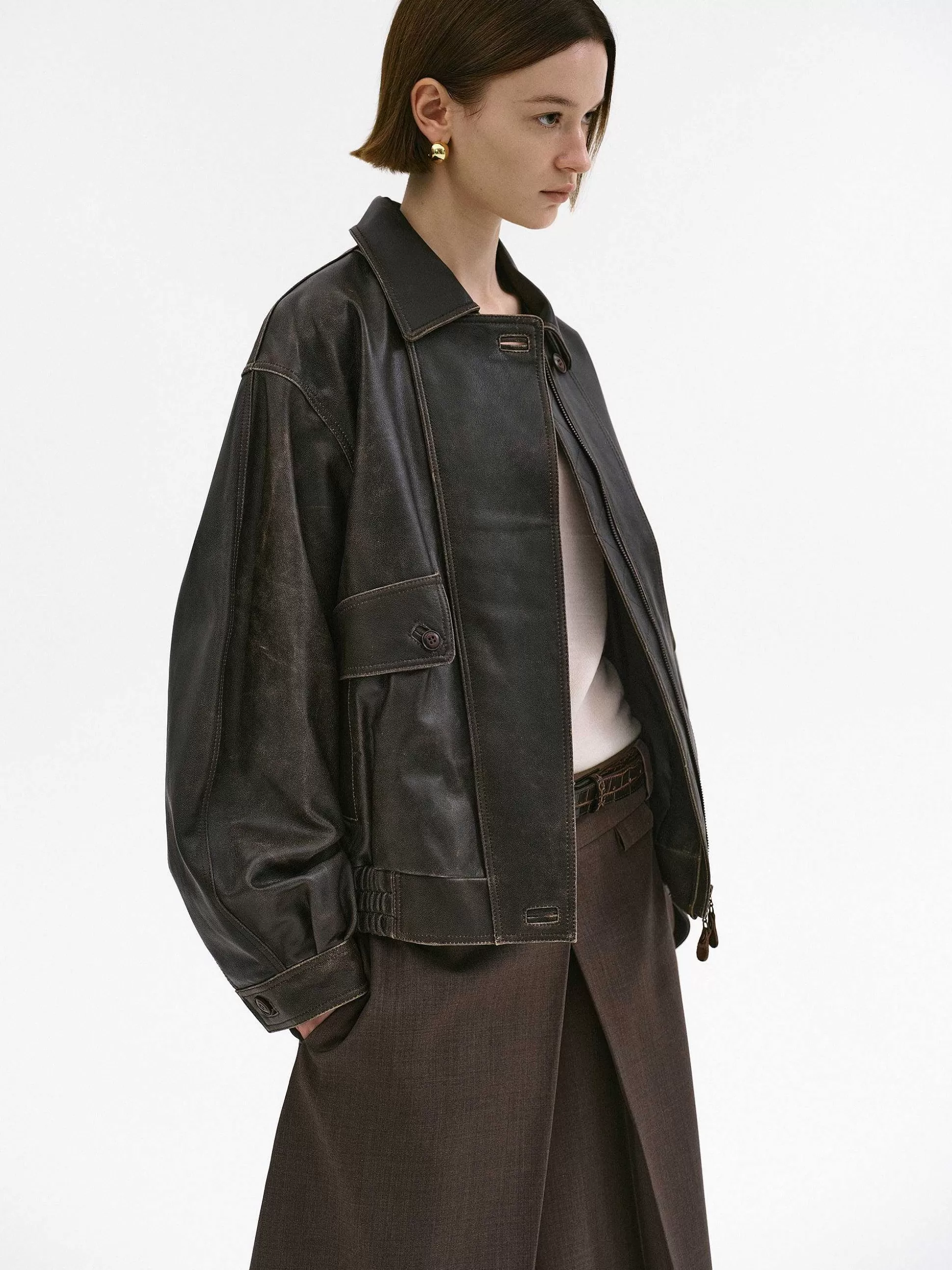 Women Source Unknown Accessories-Geva Faded Lambskin Bomber Jacket, Brown