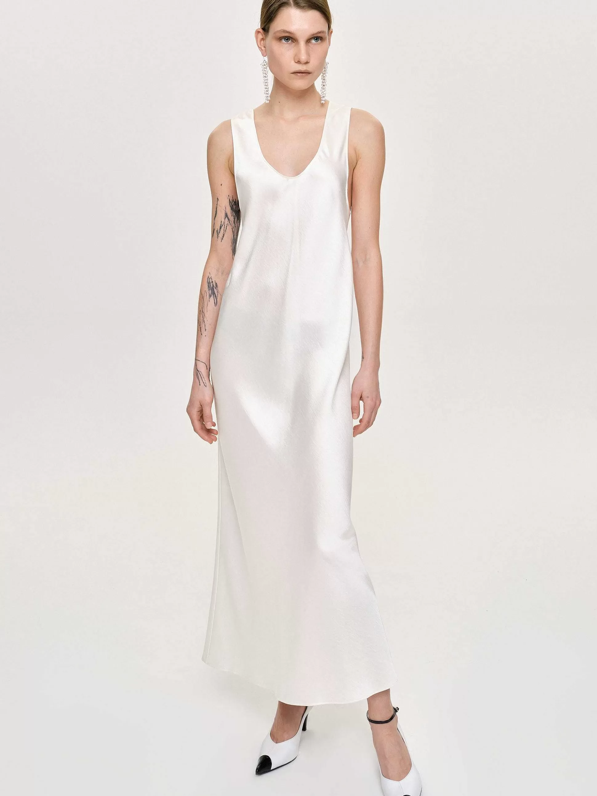 Women Source Unknown Accessories-Satin Maxi Dress, Pearl