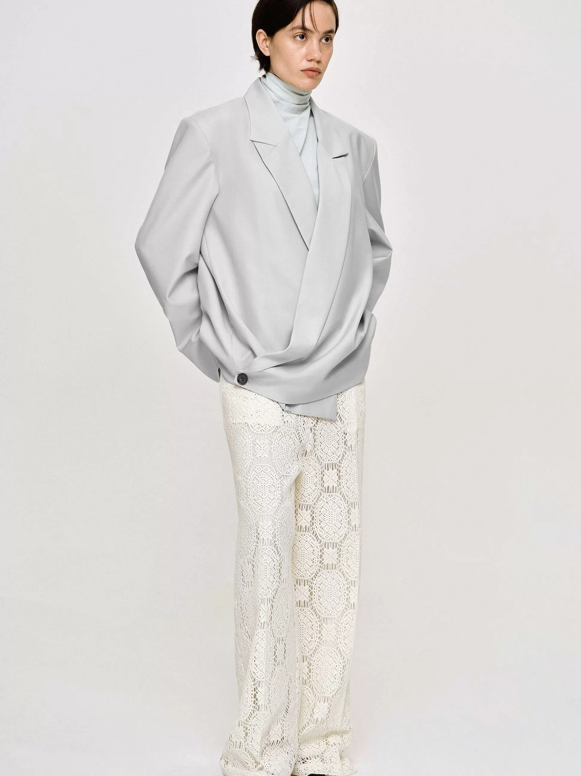 Women Source Unknown Accessories-Baia Boxy Wrap Blazer, Gainsboro Grey