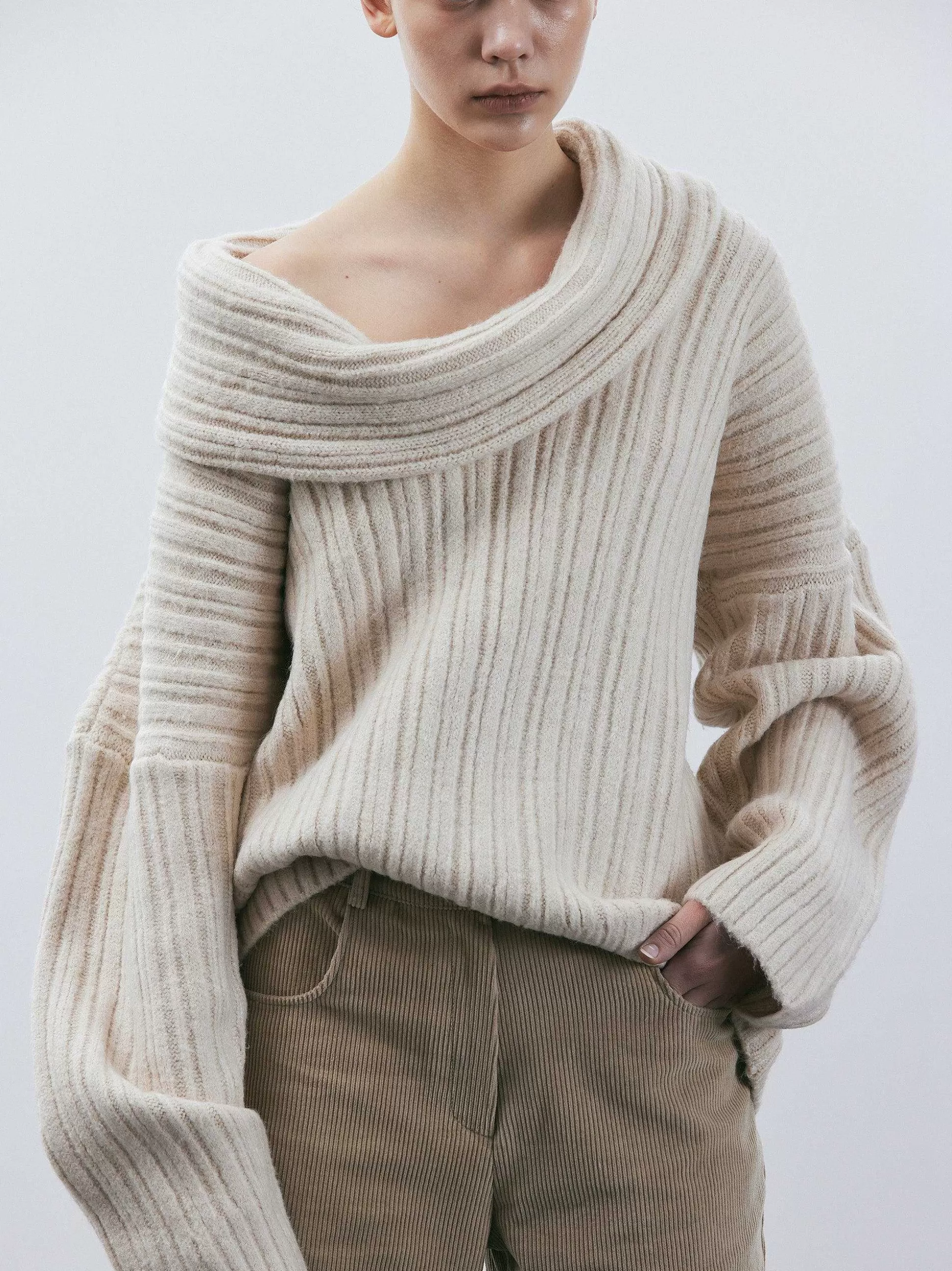 Women Source Unknown Accessories-Becca Oversized High Roll Knit Pullover, Birch