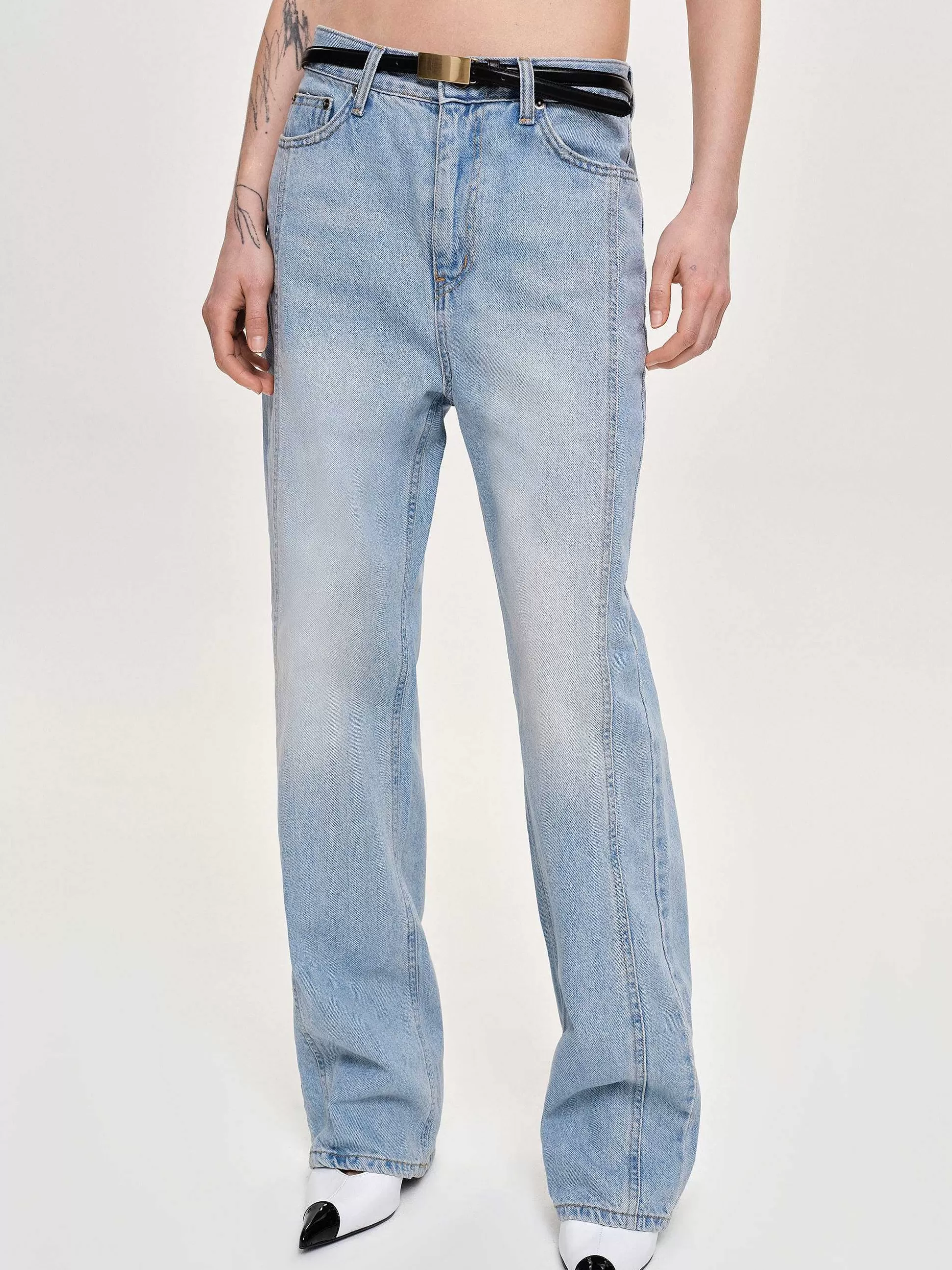 Women Source Unknown Denim-Side Paneled Straight Jeans, Light Washed Blue