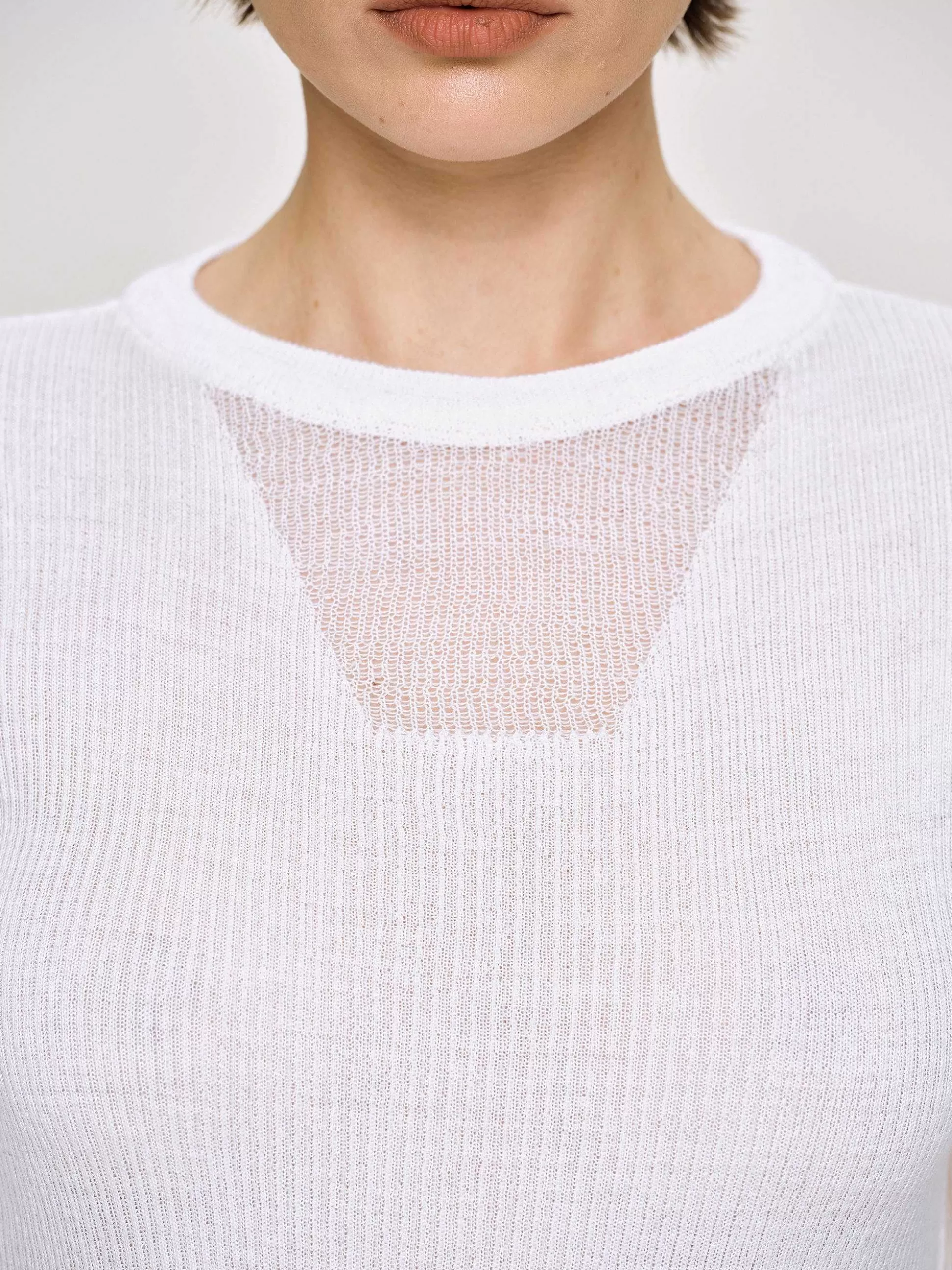 Women Source Unknown Knitwear-Sheer Sleeve Knit, White