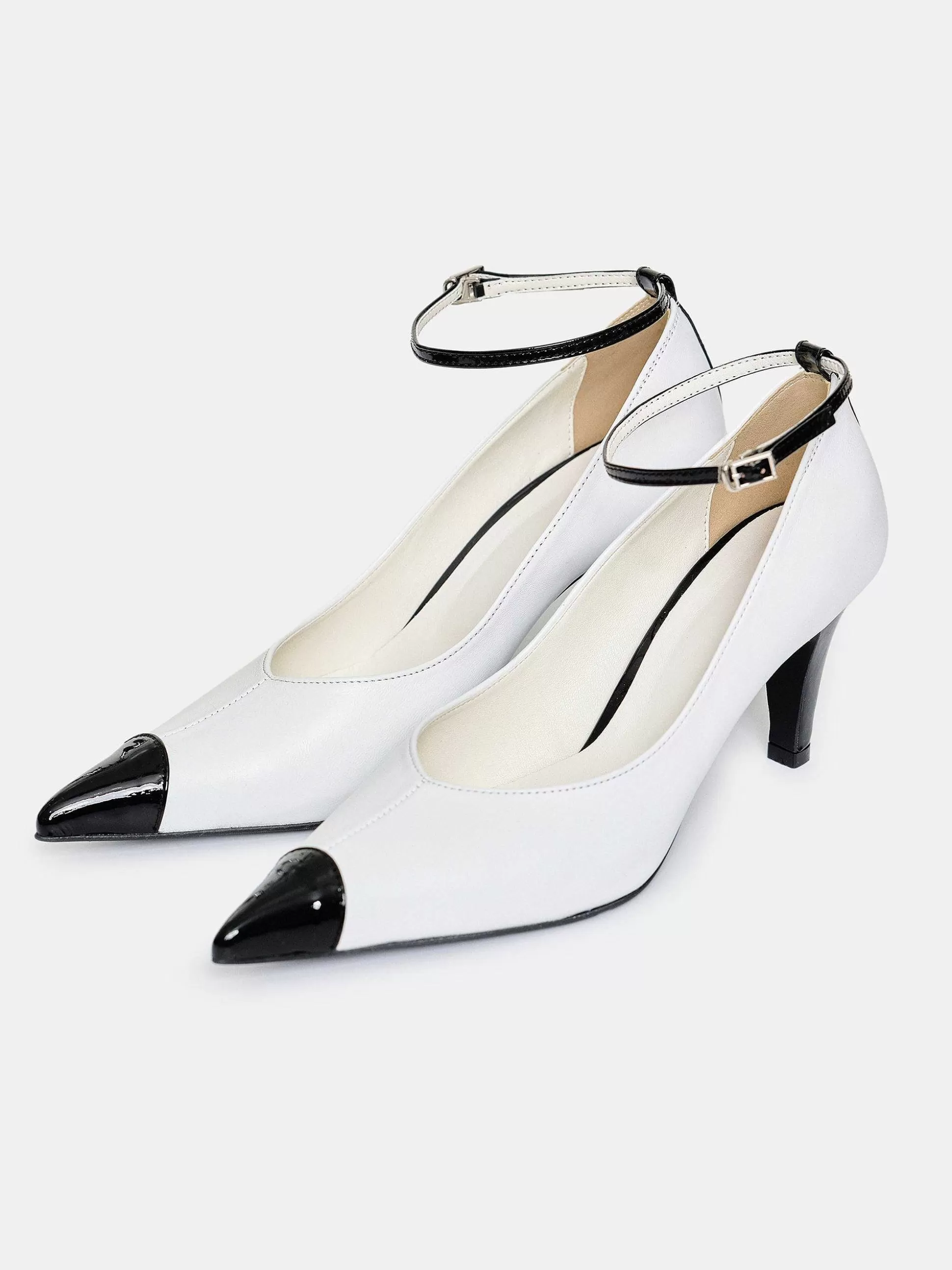 Upper: 100% Lambskin, 100% CalfskinSole: 100% PuAlmond Cap ToePolished FinishStiletto HeelBicolorAdjustable Pin-Buckle C…