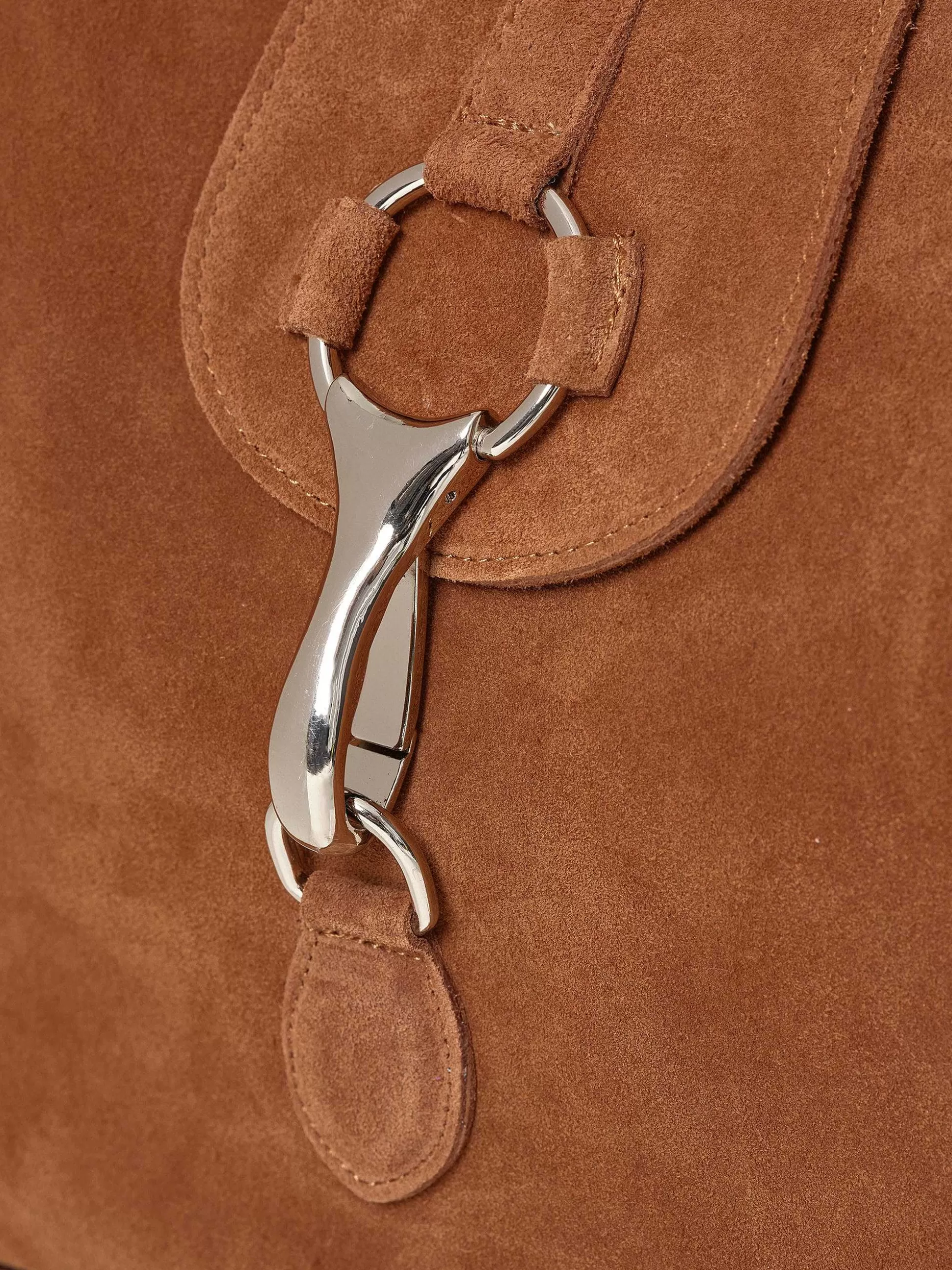 100% Calfskin SuedeSoft Pliable Calfskin Suede Leather O-Ring Fixed Carry HandleFront Snap Hook ClosureDetachable Should…